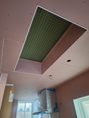 写真はしっかり養生していますが、養生を外してみましたら 2階の窓からの採光が1階に降りてきました。完成が楽しみです。