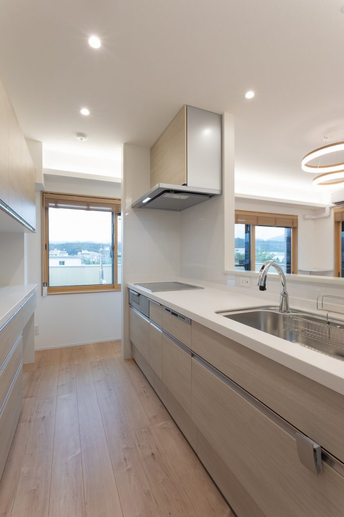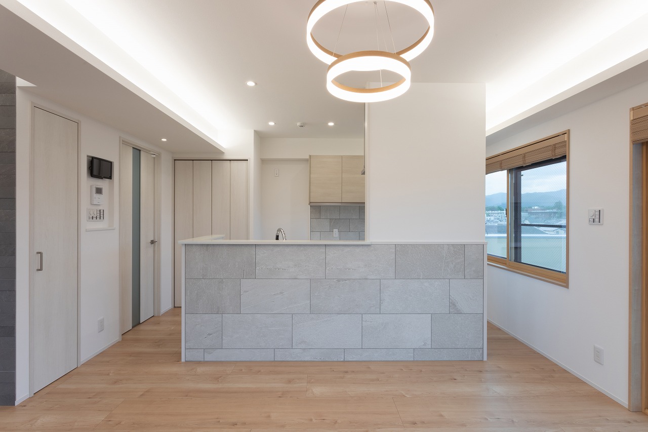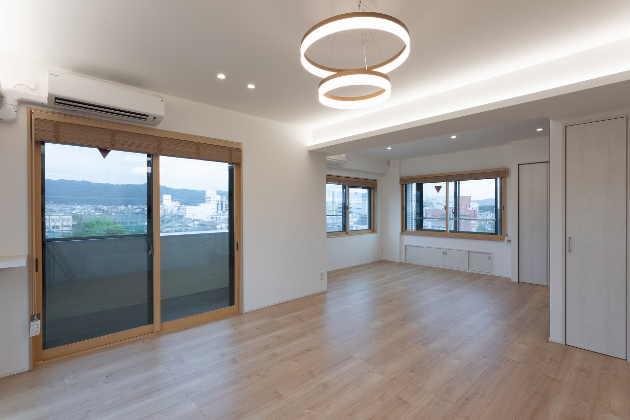 もともと4階にあったLDKは窓も少なく暗い印象でしたが、5階へ移したことで、北面・東面・南面の3面に窓ができ開放的で明るいLDK空間になりました。