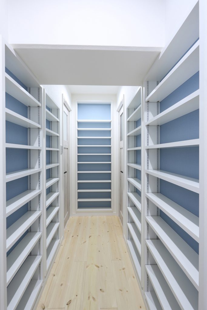 本を収納すると、さり気なく見えてくる爽やかなブルーがワンポイントです。